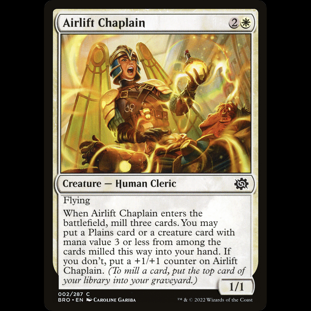 When this creature enters, mill three cards. You may put a Plains card or a creature card with mana value 3 or less from among the cards milled this way into your hand. If you don't, put a +1/+1 counter on this creature. (To mill a card, put the top card of your library into your graveyard.)