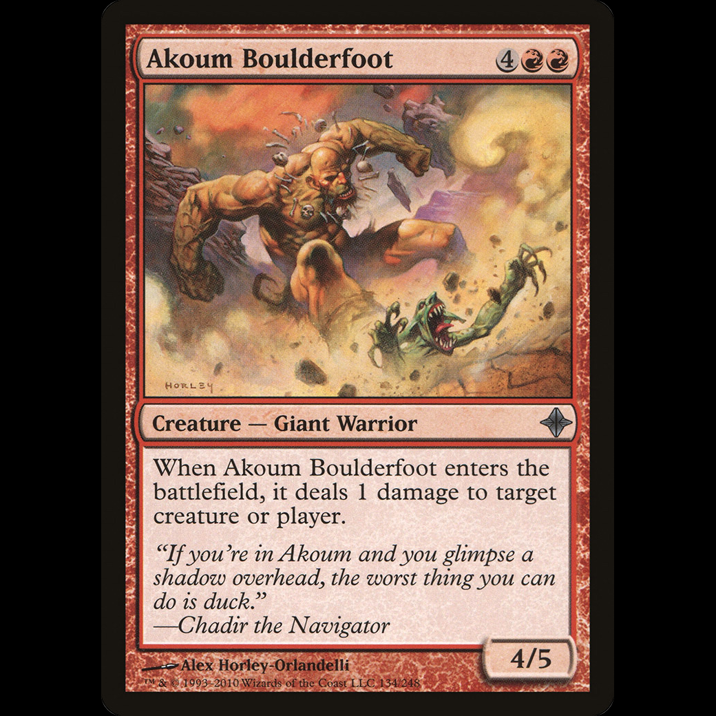 When Akoum Boulderfoot enters the battlefield, it deals 1 damage to any target.