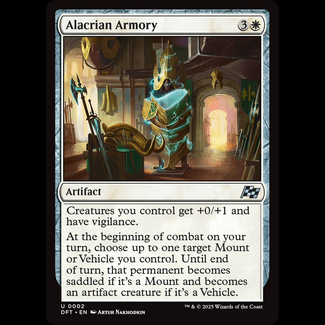 At the beginning of combat on your turn, choose up to one target Mount or Vehicle you control. Until end of turn, that permanent becomes saddled if it's a Mount and becomes an artifact creature if it's a Vehicle.