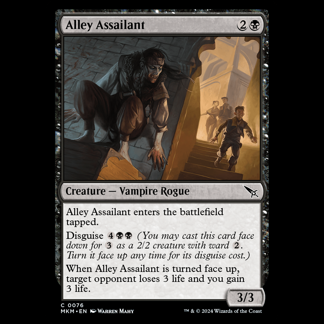 When Alley Assailant is turned face up, target opponent loses 3 life and you gain 3 life.