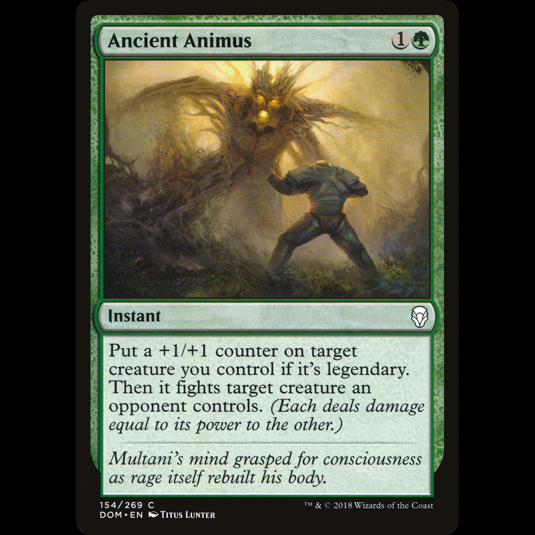 Put a +1/+1 counter on target creature you control if it's legendary. Then it fights target creature an opponent controls. (Each deals damage equal to its power to the other.)