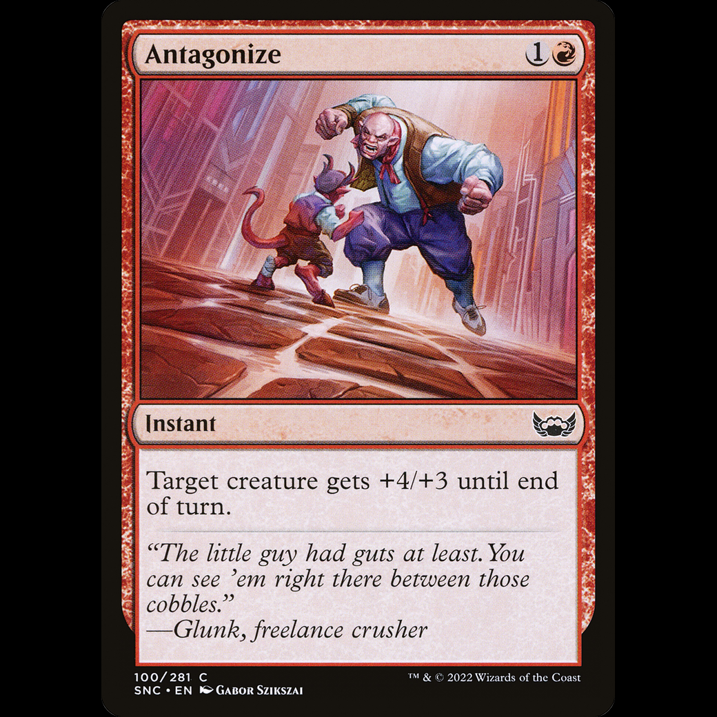 MTG Antagonize Streets of New Capenna snc#100Target creature gets +4/+3 until end of turn.