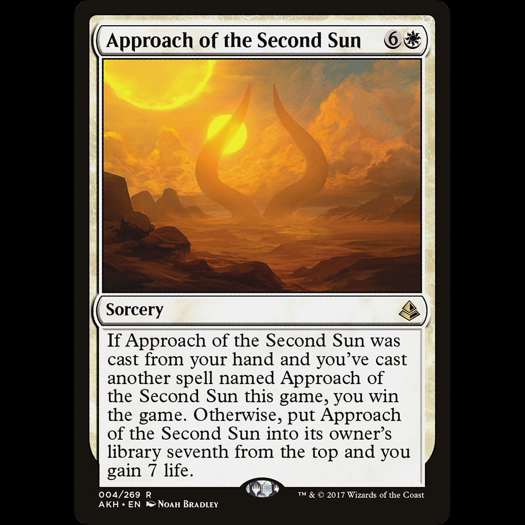 If this spell was cast from your hand and you've cast another spell named Approach of the Second Sun this game, you win the game. Otherwise, put Approach of the Second Sun into its owner's library seventh from the top and you gain 7 life.