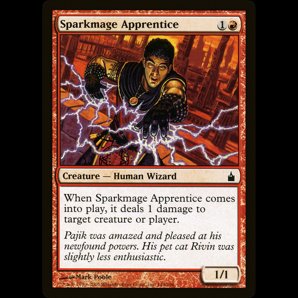 When Sparkmage Apprentice enters the battlefield, it deals 1 damage to any target.