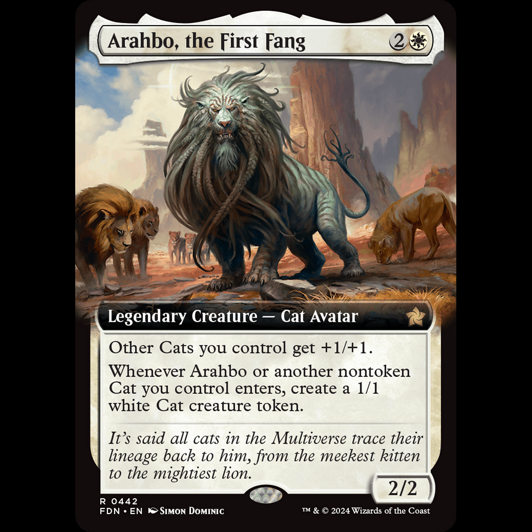 Whenever Arahbo or another nontoken Cat you control enters, create a 1/1 white Cat creature token.