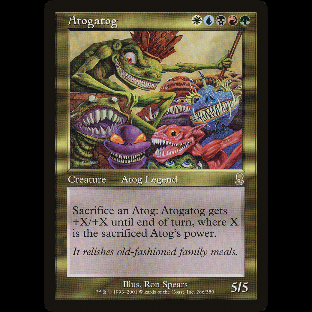 Sacrifice an Atog creature: Atogatog gets +X/+X until end of turn, where X is the sacrificed creature's power.