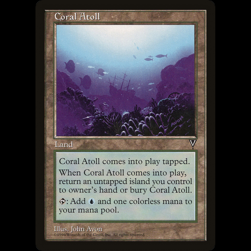 When Coral Atoll enters the battlefield, sacrifice it unless you return an untapped Island you control to its owner's hand.