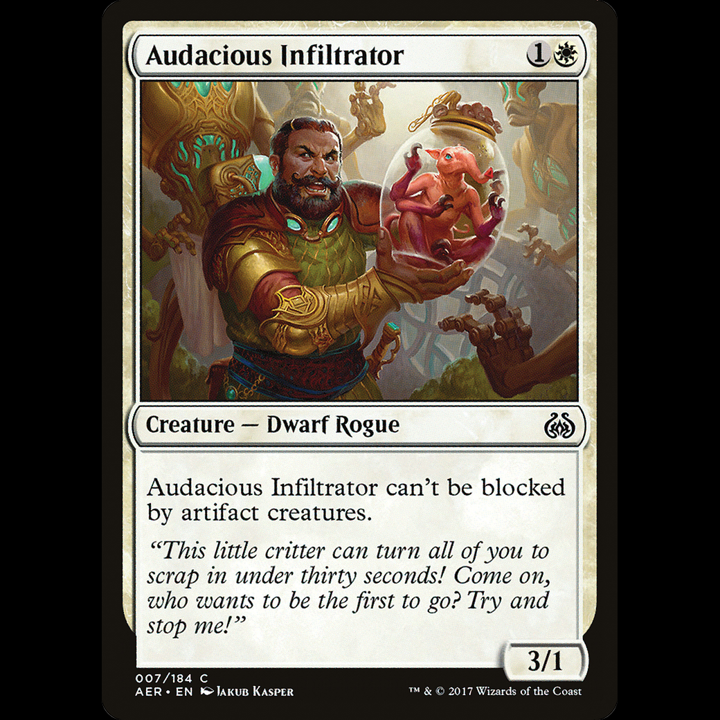 Audacious Infiltrator can't be blocked by artifact creatures.