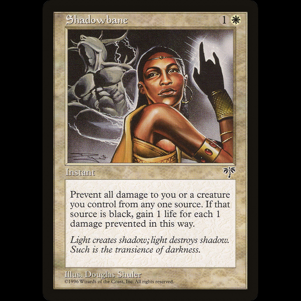 The next time a source of your choice would deal damage to you and/or creatures you control this turn, prevent that damage. If damage from a black source is prevented this way, you gain that much life.