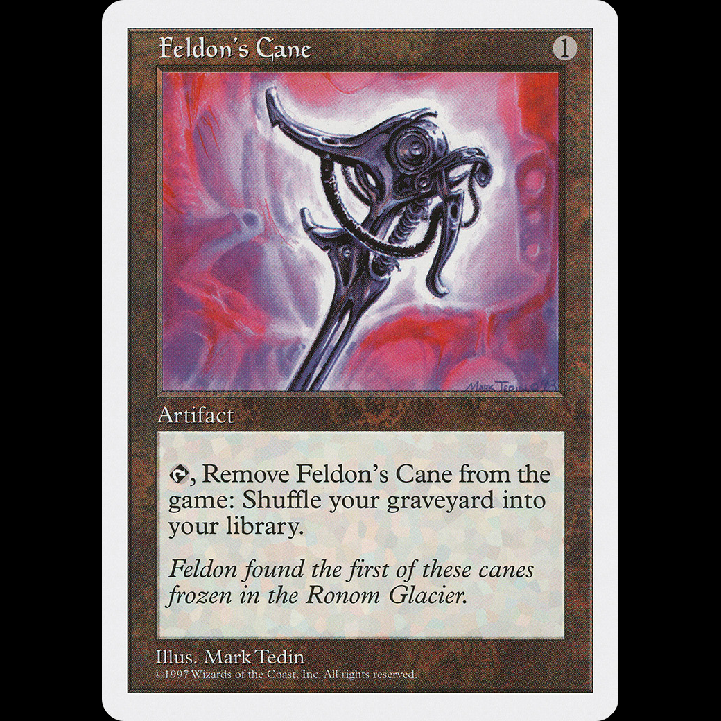 , Exile Feldon's Cane: Shuffle your graveyard into your library.