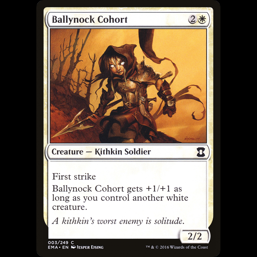 Ballynock Cohort gets +1/+1 as long as you control another white creature.
