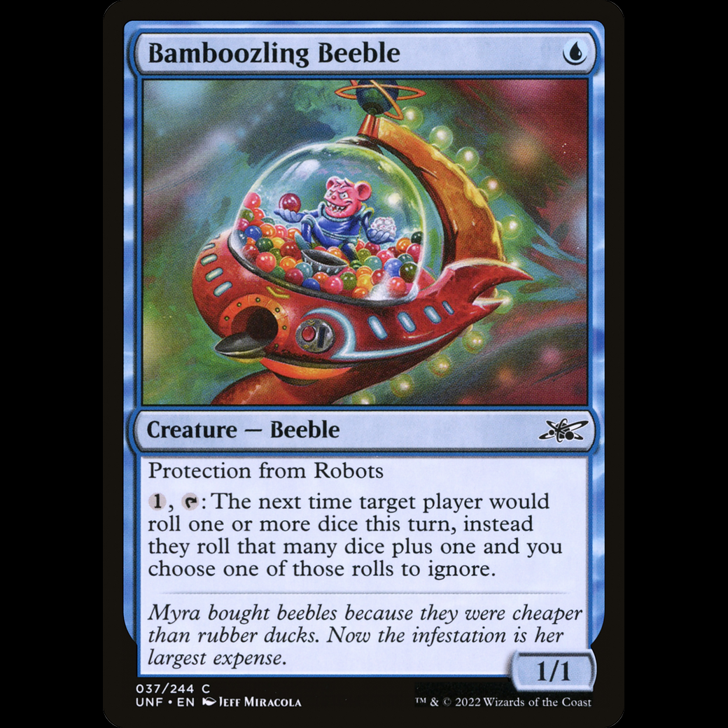 , : The next time target player would roll one or more dice this turn, instead they roll that many dice plus one and you choose one of those rolls to ignore.