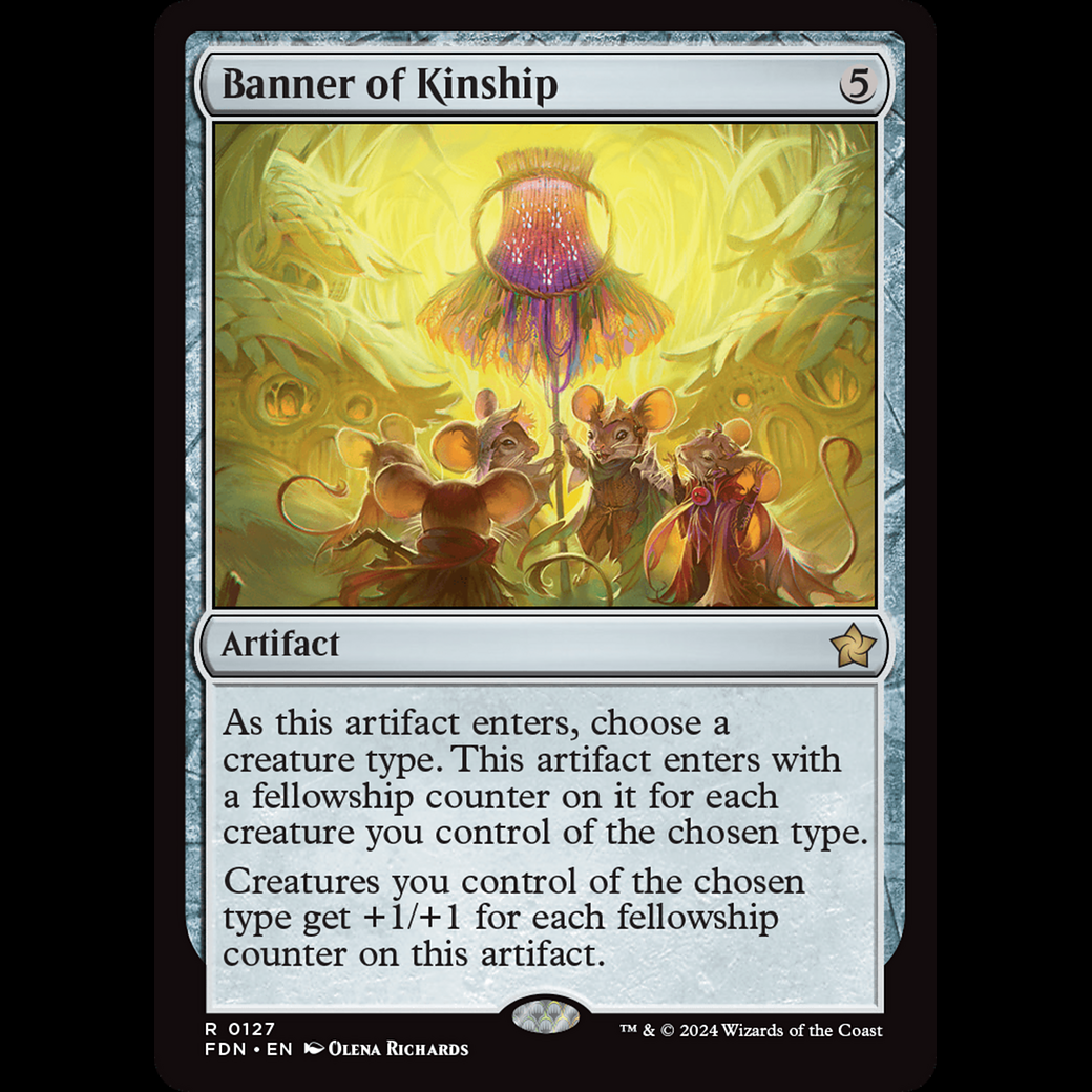 As this artifact enters, choose a creature type. This artifact enters with a fellowship counter on it for each creature you control of the chosen type.