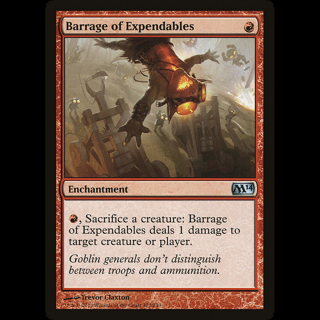 MTG Barrage of Expendables Magic 2014, Sacrifice a creature: Barrage of Expendables deals 1 damage to any target.