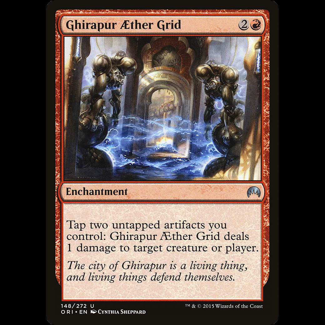 MTG Barrera de éter de Ghirapur (Ghirapur Aether Grid) Magic OriginsTap two untapped artifacts you control: Ghirapur Aether Grid deals 1 damage to any target.