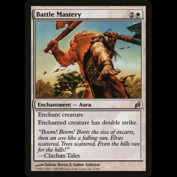 Enchanted creature has double strike. (It deals both first-strike and regular combat damage.)