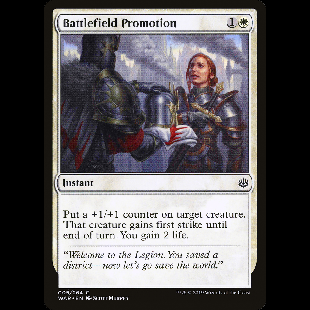 Put a +1/+1 counter on target creature. That creature gains first strike until end of turn. You gain 2 life. (A creature with first strike deals combat damage before creatures without first strike.)