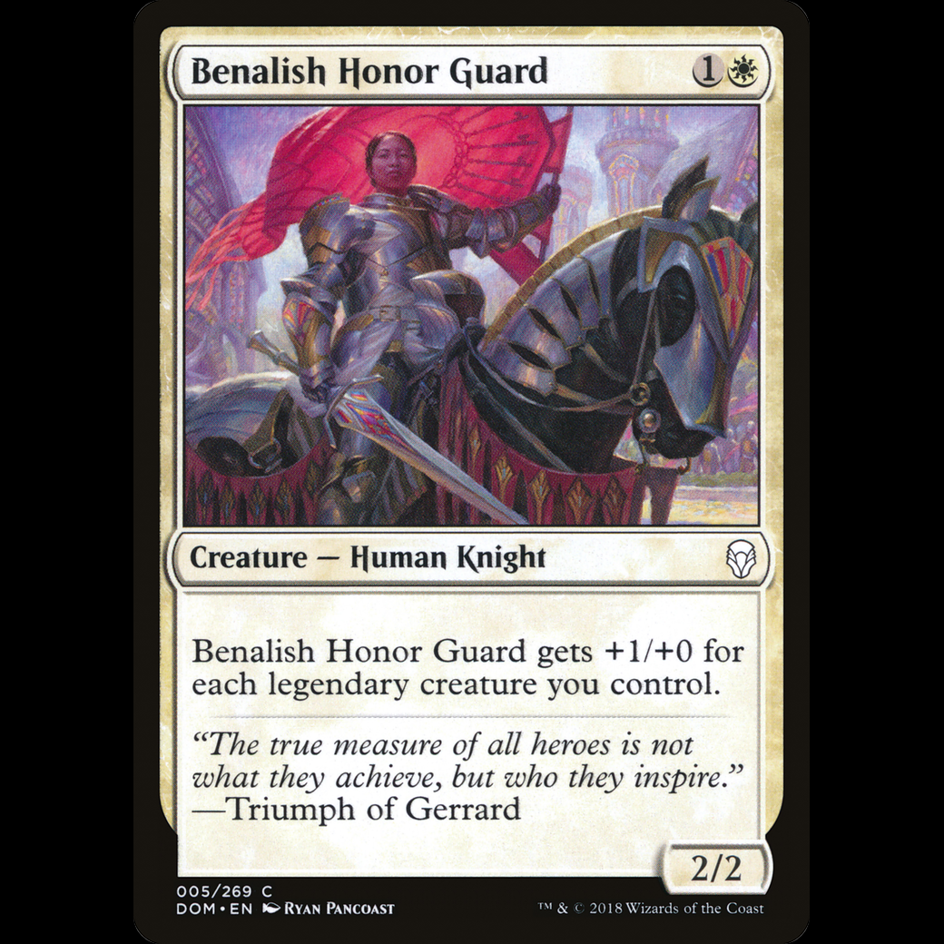 Benalish Honor Guard gets +1/+0 for each legendary creature you control.