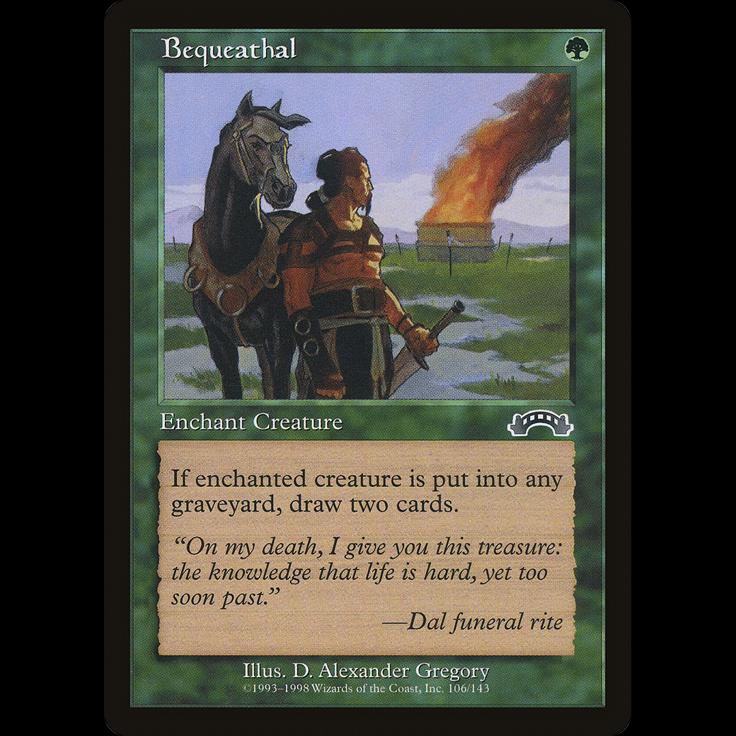 MTG Bequeathal ExodusEnchant creature When enchanted creature dies, you draw two cards.