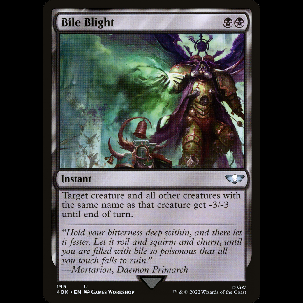 MTG Bile Blight Warhammer 40,000 Commander 40k#195 Target creature and all other creatures with the same name as that creature get -3/-3 until end of turn.