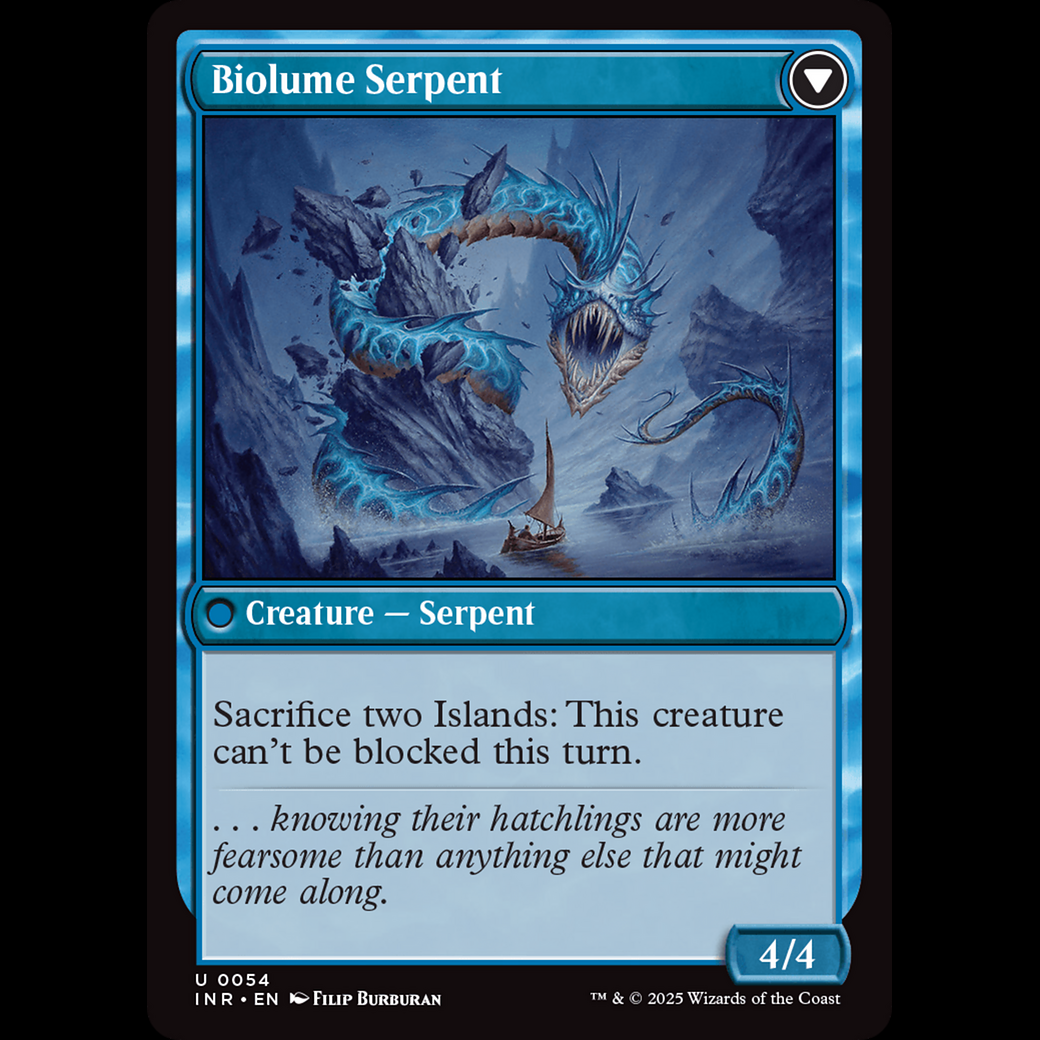 Sacrifice two Islands: Biolume Serpent can't be blocked this turn.