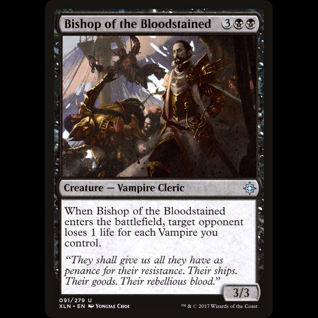 When Bishop of the Bloodstained enters the battlefield, target opponent loses 1 life for each Vampire you control.