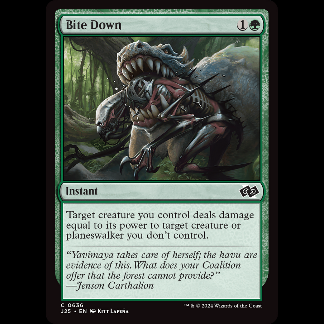 Target creature you control deals damage equal to its power to target creature or planeswalker you don't control.