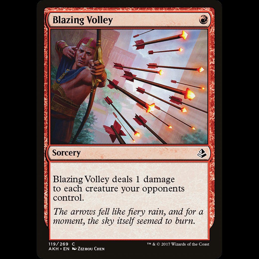 MTG Blazing Volley AmonkhetBlazing Volley deals 1 damage to each creature your opponents control.