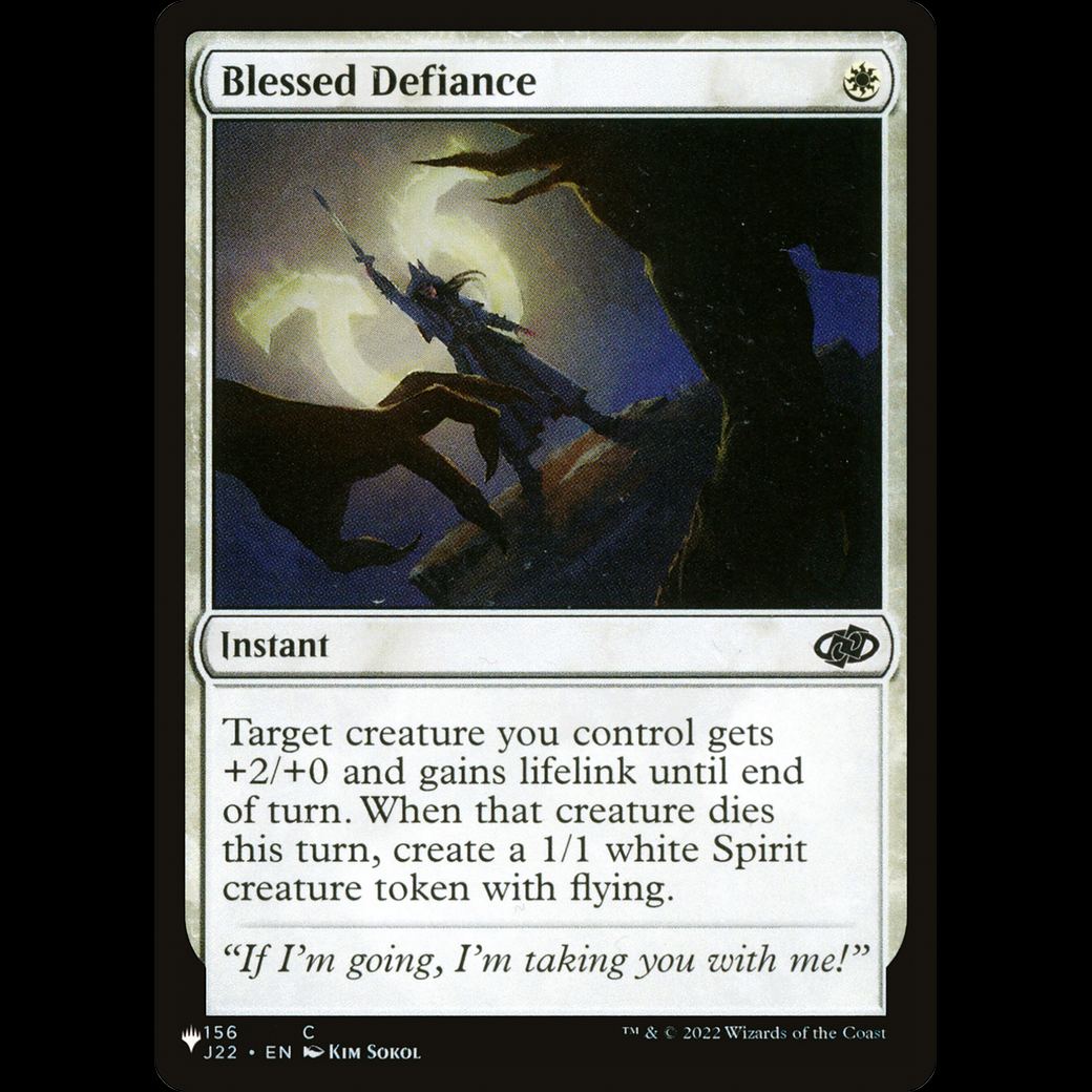 Target creature you control gets +2/+0 and gains lifelink until end of turn. When that creature dies this turn, create a 1/1 white Spirit creature token with flying.