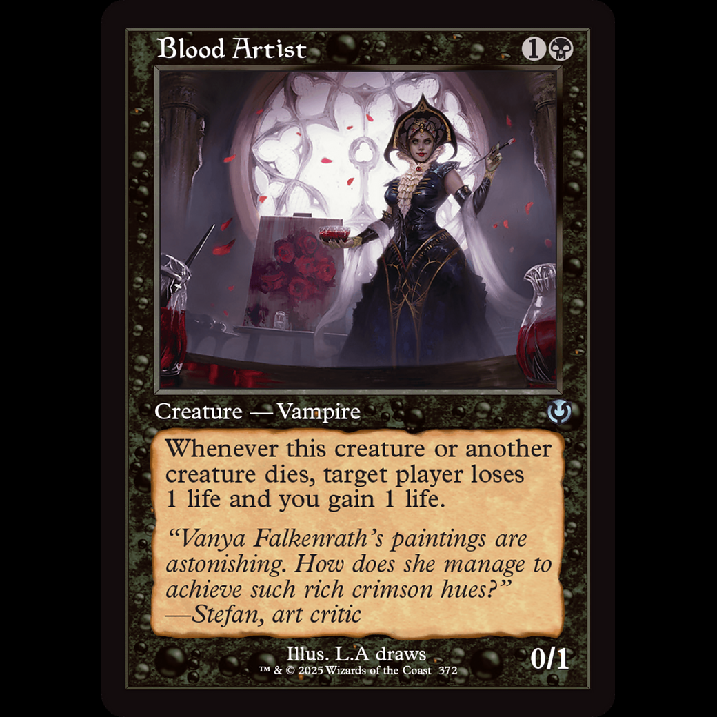 Whenever this creature or another creature dies, target player loses 1 life and you gain 1 life.