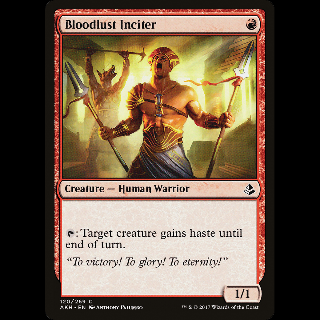 MTG Bloodlust Inciter Amonkhet: Target creature gains haste until end of turn.