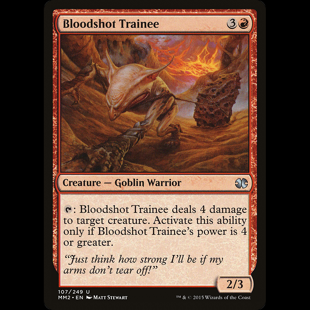 : Bloodshot Trainee deals 4 damage to target creature. Activate only if Bloodshot Trainee's power is 4 or greater.
