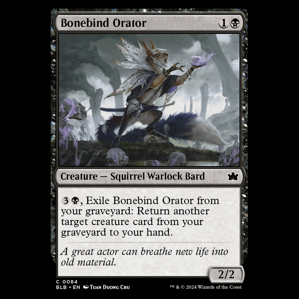 , Exile Bonebind Orator from your graveyard: Return another target creature card from your graveyard to your hand.