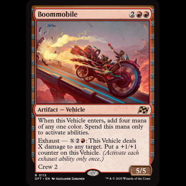 Exhaust — : This Vehicle deals X damage to any target. Put a +1/+1 counter on this Vehicle. (Activate each exhaust ability only once.)