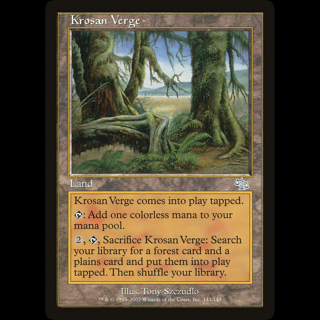, , Sacrifice Krosan Verge: Search your library for a Forest card and a Plains card, put them onto the battlefield tapped, then shuffle.