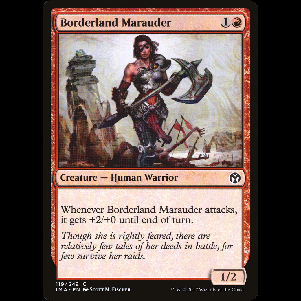 MTG Borderland Marauder Iconic Masters ima#119Whenever this creature attacks, it gets +2/+0 until end of turn.