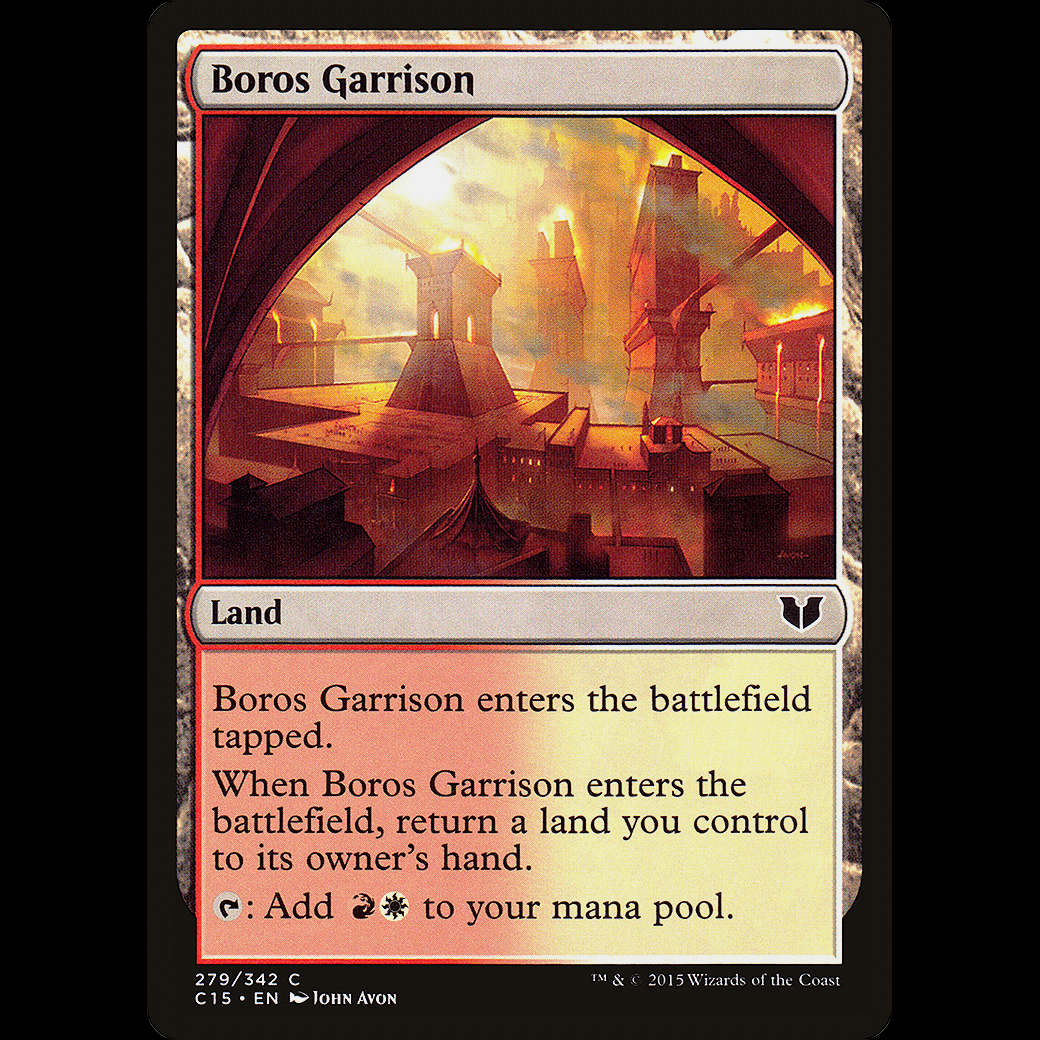 When Boros Garrison enters, return a land you control to its owner's hand.