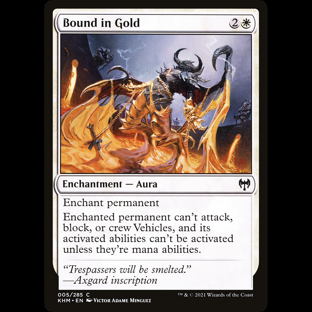 Enchanted permanent can't attack, block, or crew Vehicles, and its activated abilities can't be activated unless they're mana abilities.
