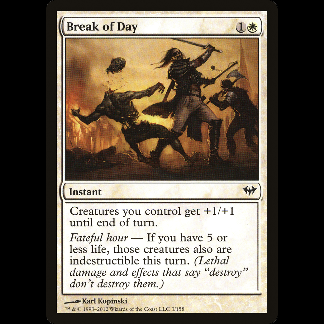 Fateful hour — If you have 5 or less life, those creatures gain indestructible until end of turn. (Damage and effects that say