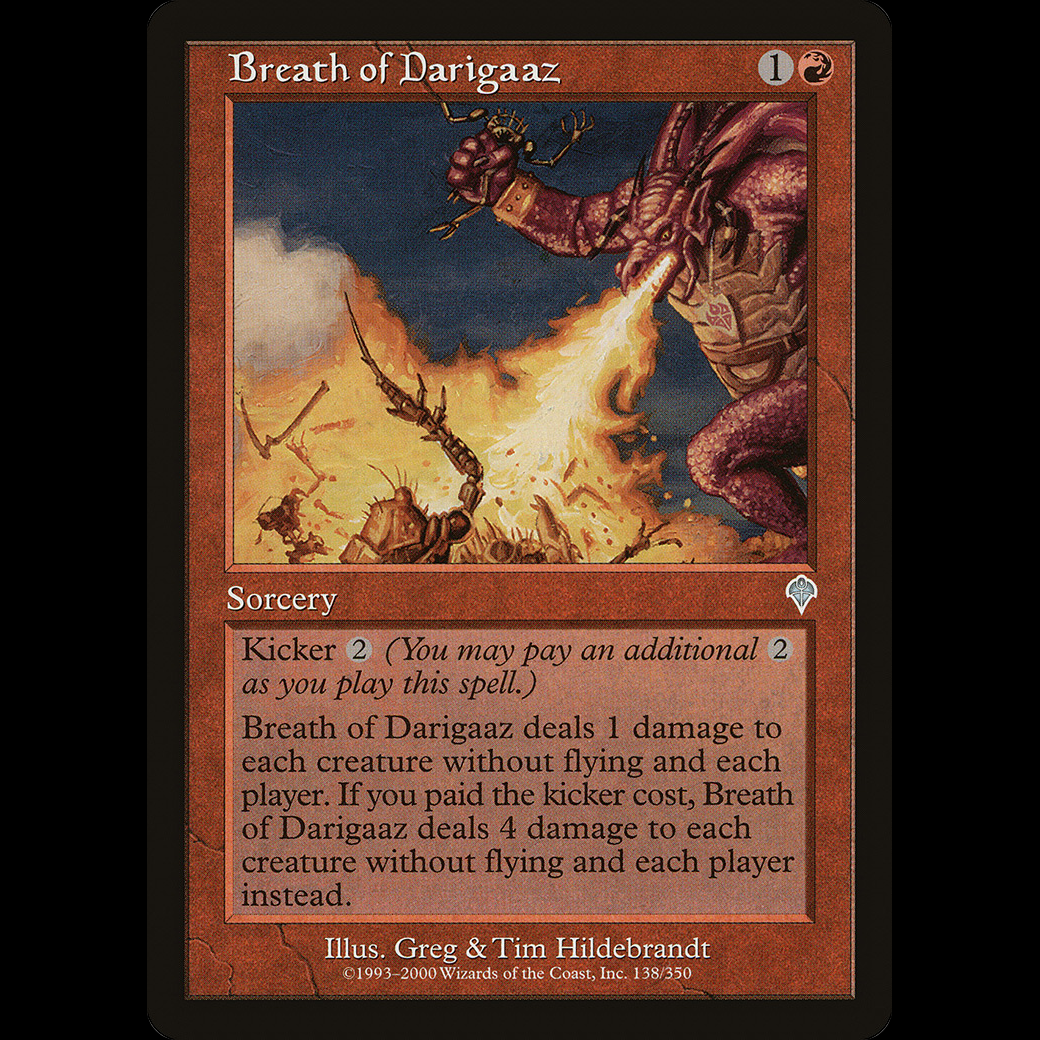 Breath of Darigaaz deals 1 damage to each creature without flying and each player. If this spell was kicked, it deals 4 damage to each creature without flying and each player instead.