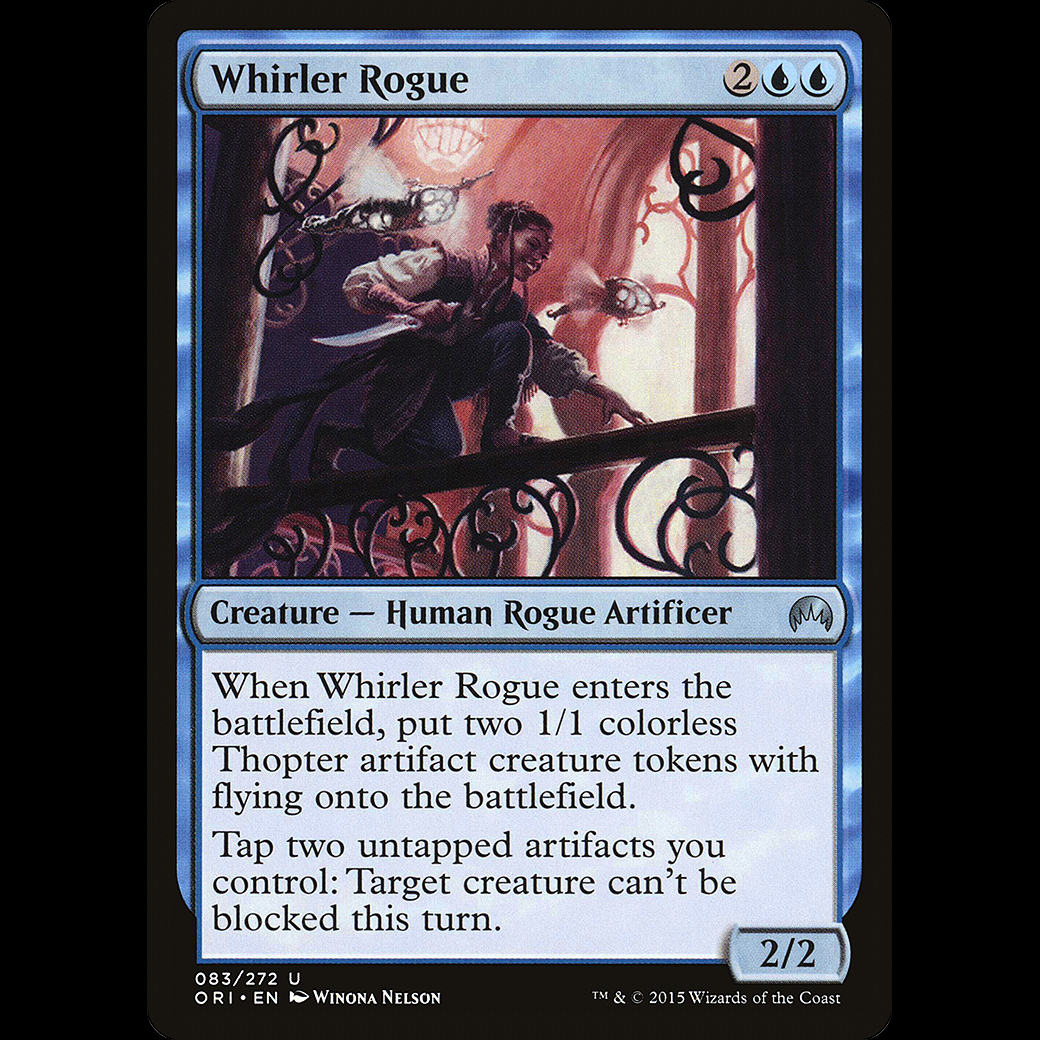 When Whirler Rogue enters the battlefield, create two 1/1 colorless Thopter artifact creature tokens with flying.