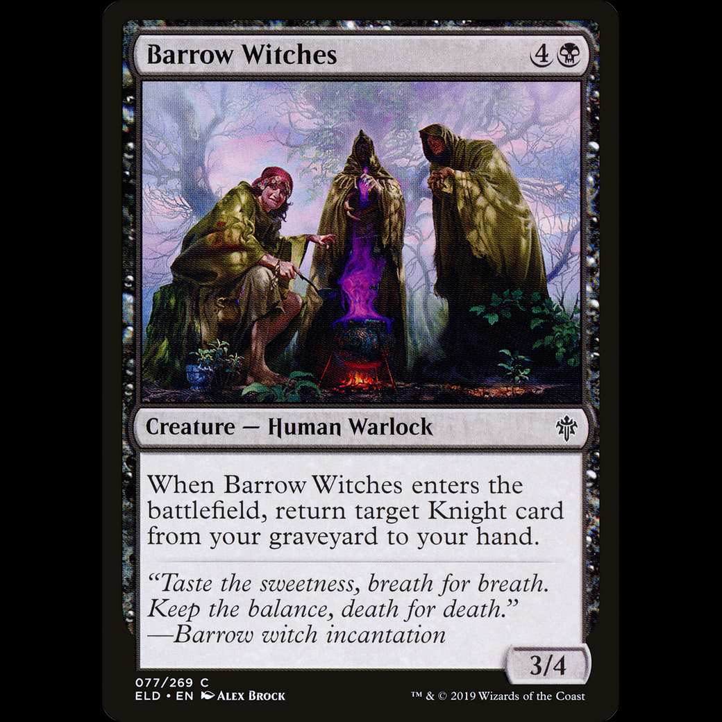 MTG Brujas de los túmulos (Barrow Witches) Throne of Eldraine eld#77When this creature enters, return target Knight card from your graveyard to your hand.