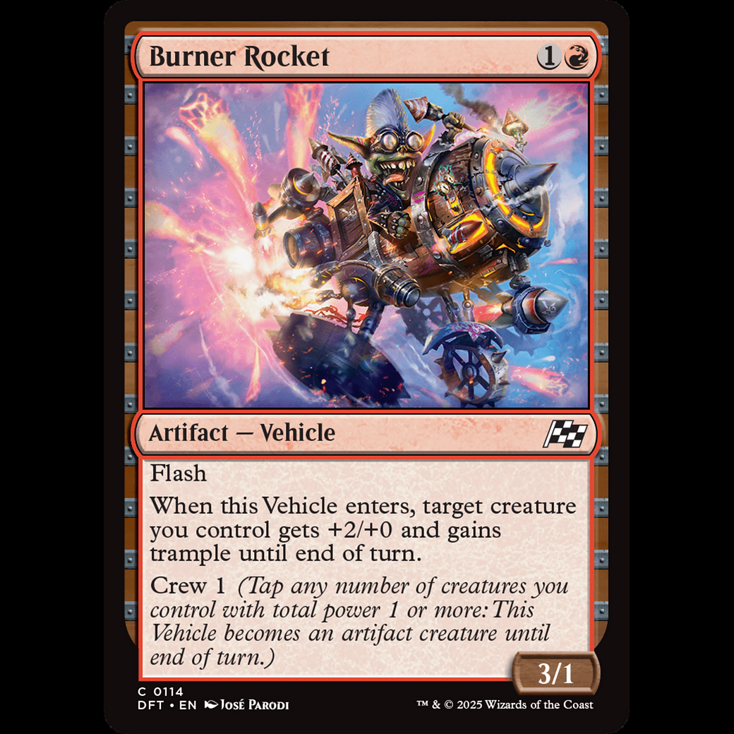 When this Vehicle enters, target creature you control gets +2/+0 and gains trample until end of turn.