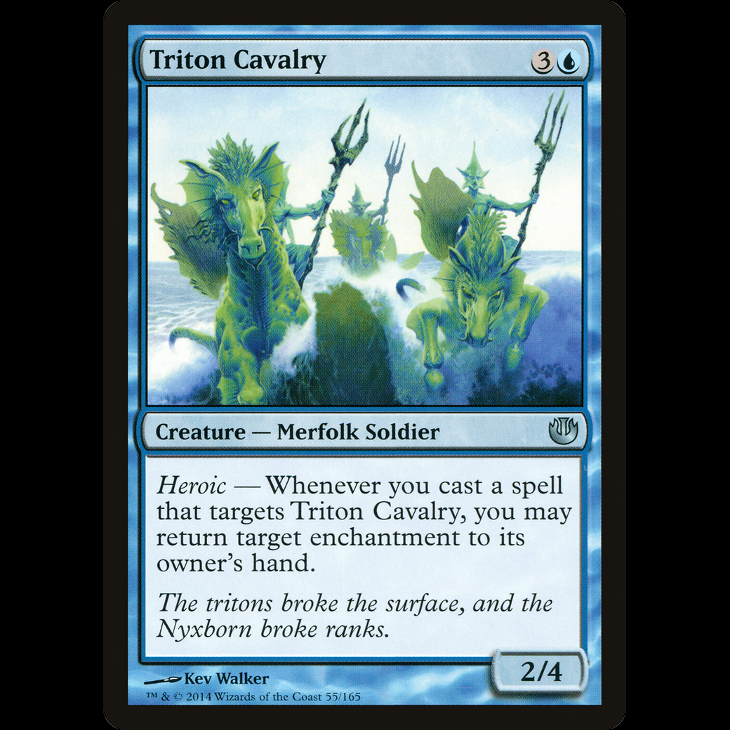 Heroic — Whenever you cast a spell that targets Triton Cavalry, you may return target enchantment to its owner's hand.