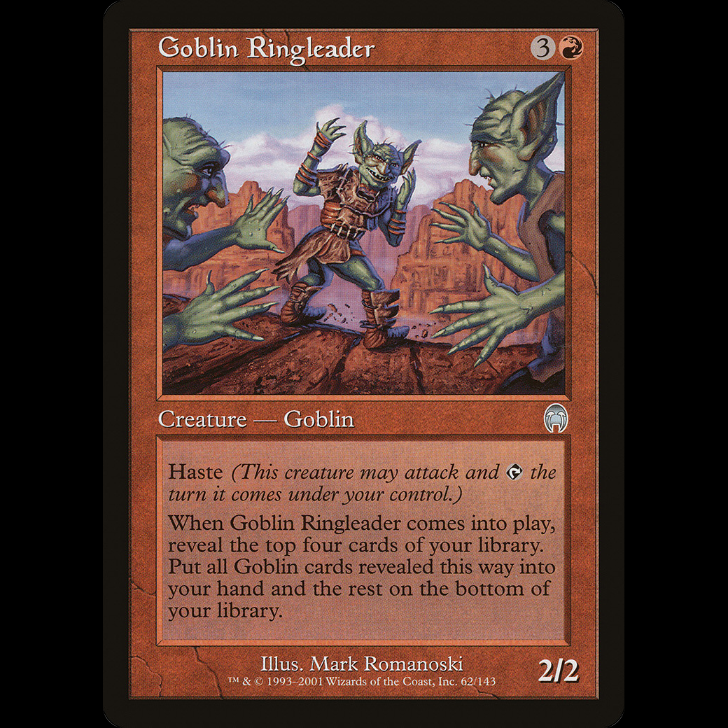 When this creature enters, reveal the top four cards of your library. Put all Goblin cards revealed this way into your hand and the rest on the bottom of your library in any order.