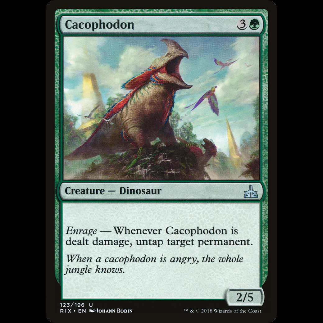Enrage — Whenever Cacophodon is dealt damage, untap target permanent.