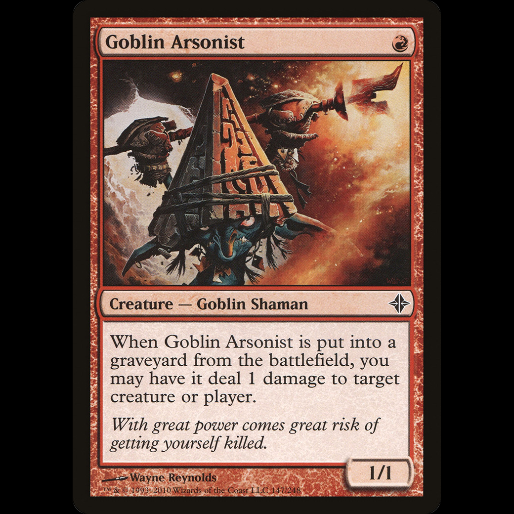 When Goblin Arsonist dies, you may have it deal 1 damage to any target.