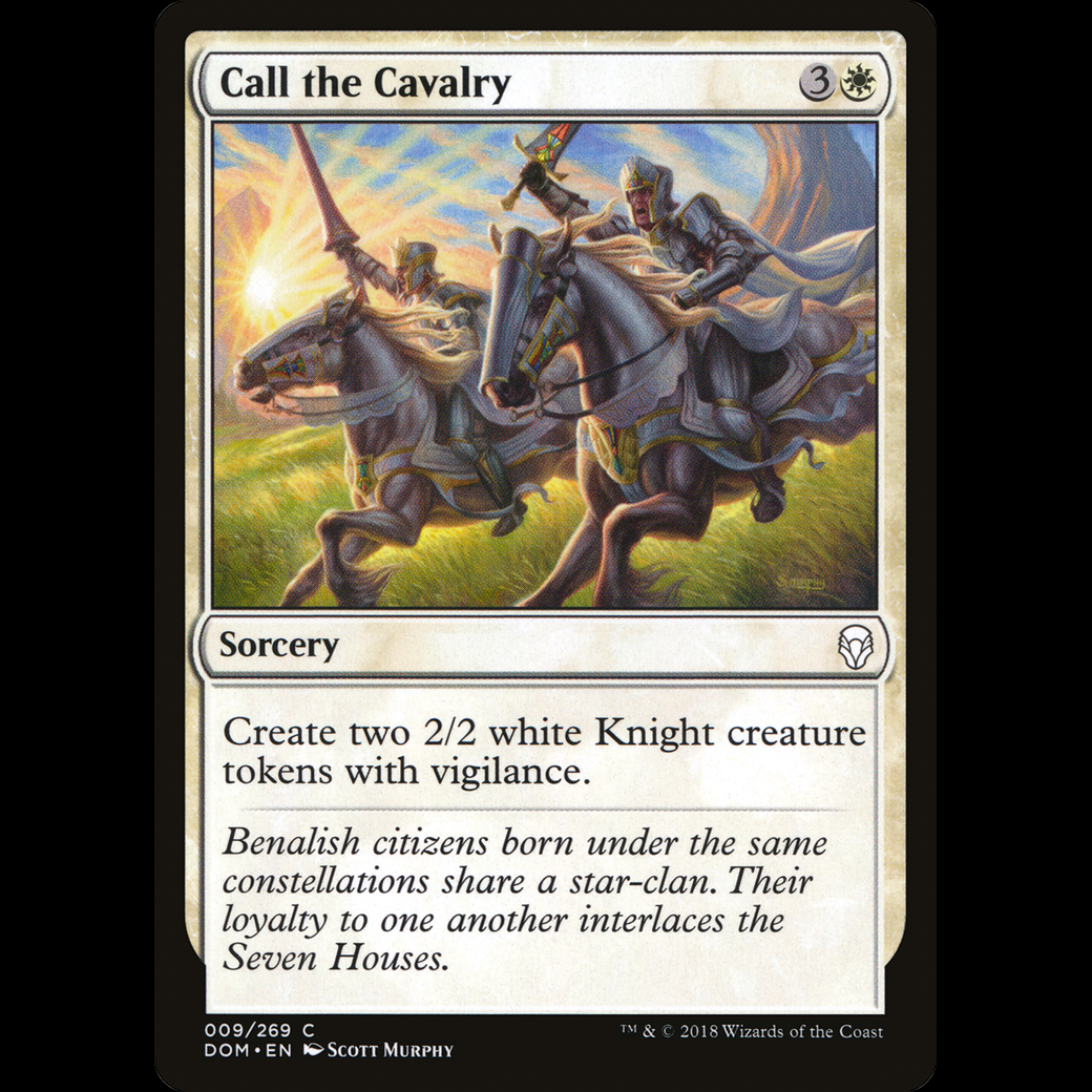 MTG Call the Cavalry Dominaria dom#9Create two 2/2 white Knight creature tokens with vigilance.