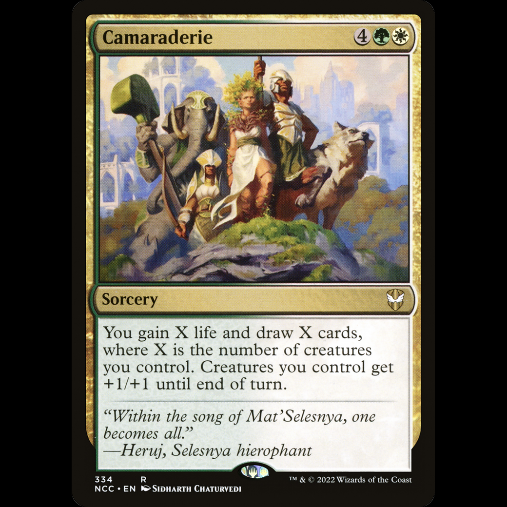 You gain X life and draw X cards, where X is the number of creatures you control. Creatures you control get +1/+1 until end of turn.