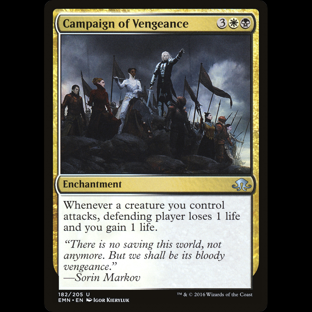 Whenever a creature you control attacks, defending player loses 1 life and you gain 1 life.